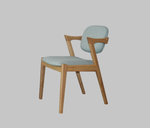 Cadeira estofada com opção de acabamento em verniz ou lacado branco mate. Outros acabamentos ou cores por orçamento.