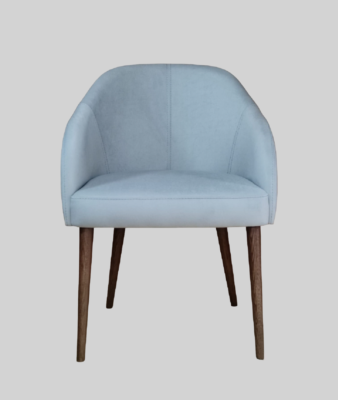Cadeira estofada com opção de acabamento em verniz ou lacado branco mate. Outros acabamentos ou cores por orçamento.